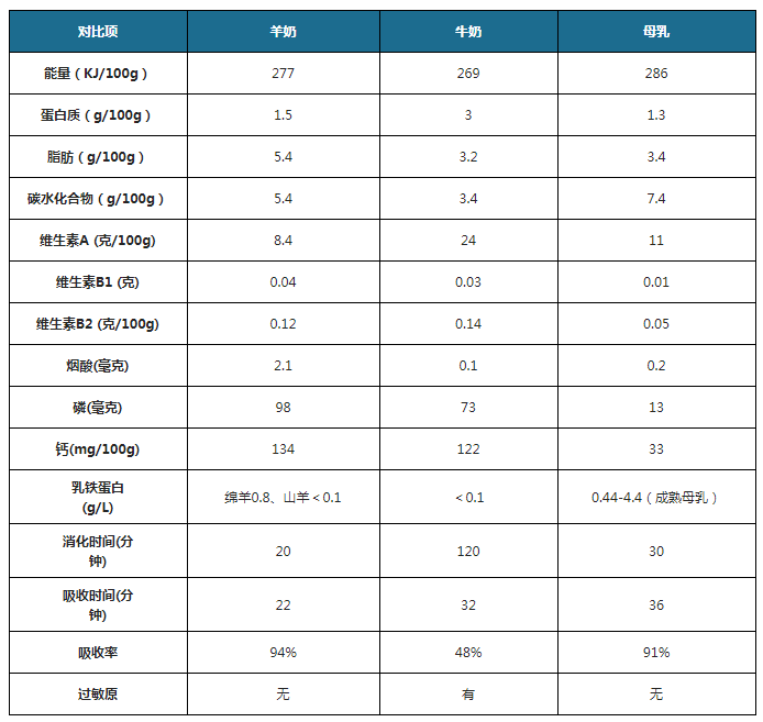 ▲羊奶和牛奶的營(yíng)養(yǎng)數(shù)據(jù)對(duì)比,圖片來(lái)自于網(wǎng)絡(luò)